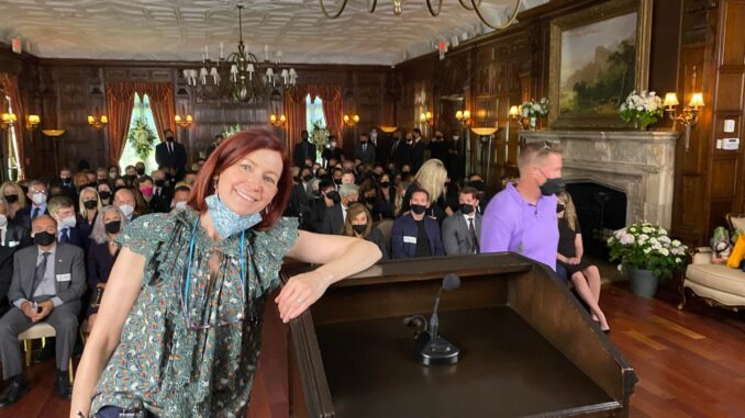 Elsbeth deploying her signature “distract and deduce” technique