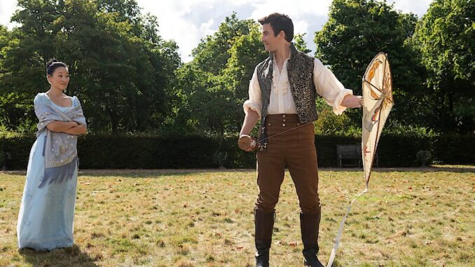 We wanted right away to signal to viewers that this is a different type of season and that you’re going to be let into places in this world that you’ve never been. So we dip in right away downstairs. I do think that “An Offer From a Gentleman” adapts himself really easily to television, because there are a lot of plot-driven visual set pieces in that book. So plot wise, it felt like we were able to follow it pretty closely. I feel like the Cinderella story, Julia Quinn is already invoking the trope and then turning it on its head a little bit, because the Sophie character, she’s not a maid waiting to be saved by a prince. She’s got pluck, she’s got moxie, she’s got all those words that you would use to suggest a woman who’s making her own way in the world. And our version definitely honors that character. And so we’re telling a story of not just a maid who wants to be with a gentleman, but also a gentleman who has to learn to grow to become worthy of the maid.