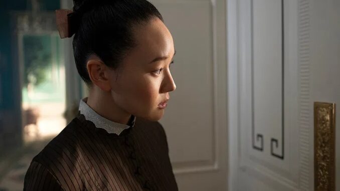 The cast—which includes new members Yerin Ha (Sophie), Katie Leung (Lady Araminta Gun), Michelle Mao (Rosamund Li) and Isabella Wei (Posy Li)—was equipped with umbrellas even when it got rainy on set.