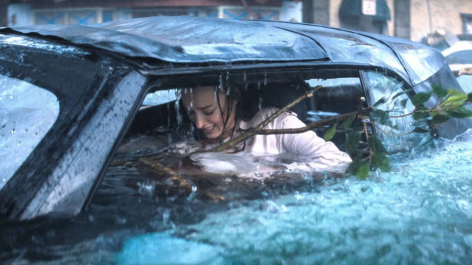 The official synopsis for the new Netflix film reads: “When a catastrophic hurricane slams a coastal town, stranded residents must survive rapidly rising waters swarming with ravenous sharks.”