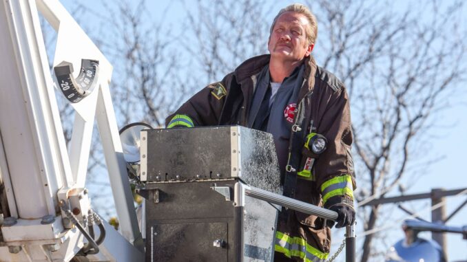 Elsewhere, Annette (Annabeth Gish) tells Pascal (Dermot Mulroney) that the call for which rigs to decommission, which includes Mouch’s (Christian Stolte) engine, as part of budget cuts, came from the CFD. Pascal’s ready to make calls, but she tells him it’s already in motion and nothing he does will stop it. Pascal then has to tell Mouch and promises him they’ll fight it. Mouch knows this could also mean his job being cut, and Pascal doesn’t sugarcoat it: With the cuts, there are calls for early retirement and it’s unlikely that they’ll find a place for him at another house. And unfortunately, budget cuts mean that there’s “just cause” to cut him. But there’s an option: With Herrmann’s (David Eigenberg) help and while keeping everyone else in the dark, he begins going through his old performance reviews to get an appeal ready for the civil service commission.