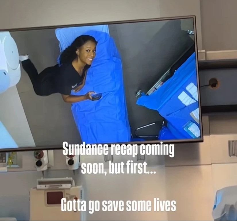 “Sundance recap coming soon, but first… got to save some lives,” Chestnut wrote via her Instagram stories in which she shared a candid shot in scrubs from the Chicago Med set.