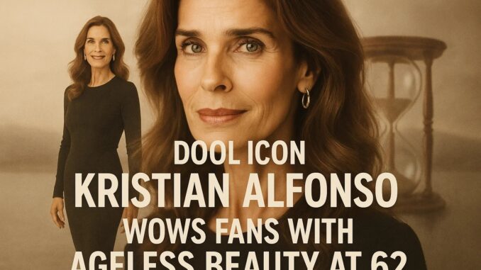 Kristian Alfonso, 62, has never looked better. The stunning brunette, whose enduring portrayal of Hope Brady on Days of Our Lives cemented her as a fixture in soap opera history, is sharing staggering “Then and Now” photos on social media. The ageless beauty’s photo share has the comment section turning into a group chat about all things Kristian Alfonso.