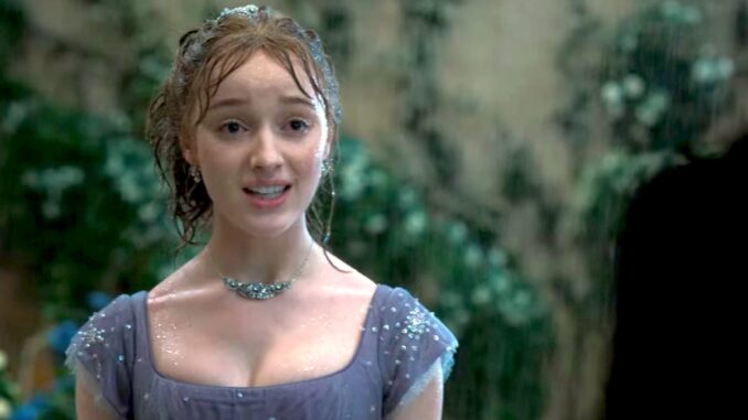 In one sex scene, Daphne, having realized she had misinterpreted her husband Simon’s comments about fathering children and having recently learned how babies are conceived, takes control of the situation to try to get what she wants. Every aesthetic detail in that controversial moment was planned, and Dynevor had a strong say in her character’s portrayal.