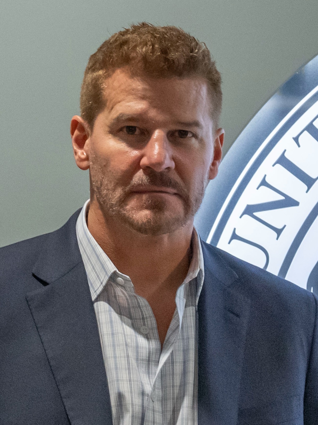 A picture of Boreanaz in a river was shown during the interview.