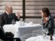 There’s just one stop left on Red’s Roadtrip to Justice, and that’s the banker’s house who handled the money Aram was framed with. Henry the Banker arrives home to find Red, in a mock turtleneck and dressy jeans, I kid you not, charming his wife into making him Beef Stroganoff and sitting down to an intimate dinner for three. It quickly becomes a little too intimate when Red pulls out a gun and shoots him in the leg (a Blacklist favorite). But the best part is obviously his exasperation with Henry’s wife’s screams: “Janice, if you don’t stop, I’m going to put you in the closet” and, once he follows through on it, “Janice, if you don’t stop your yammering I’m going to have to shoot through this door which would be a shame because I won’t have any idea what I’m shooting at!”