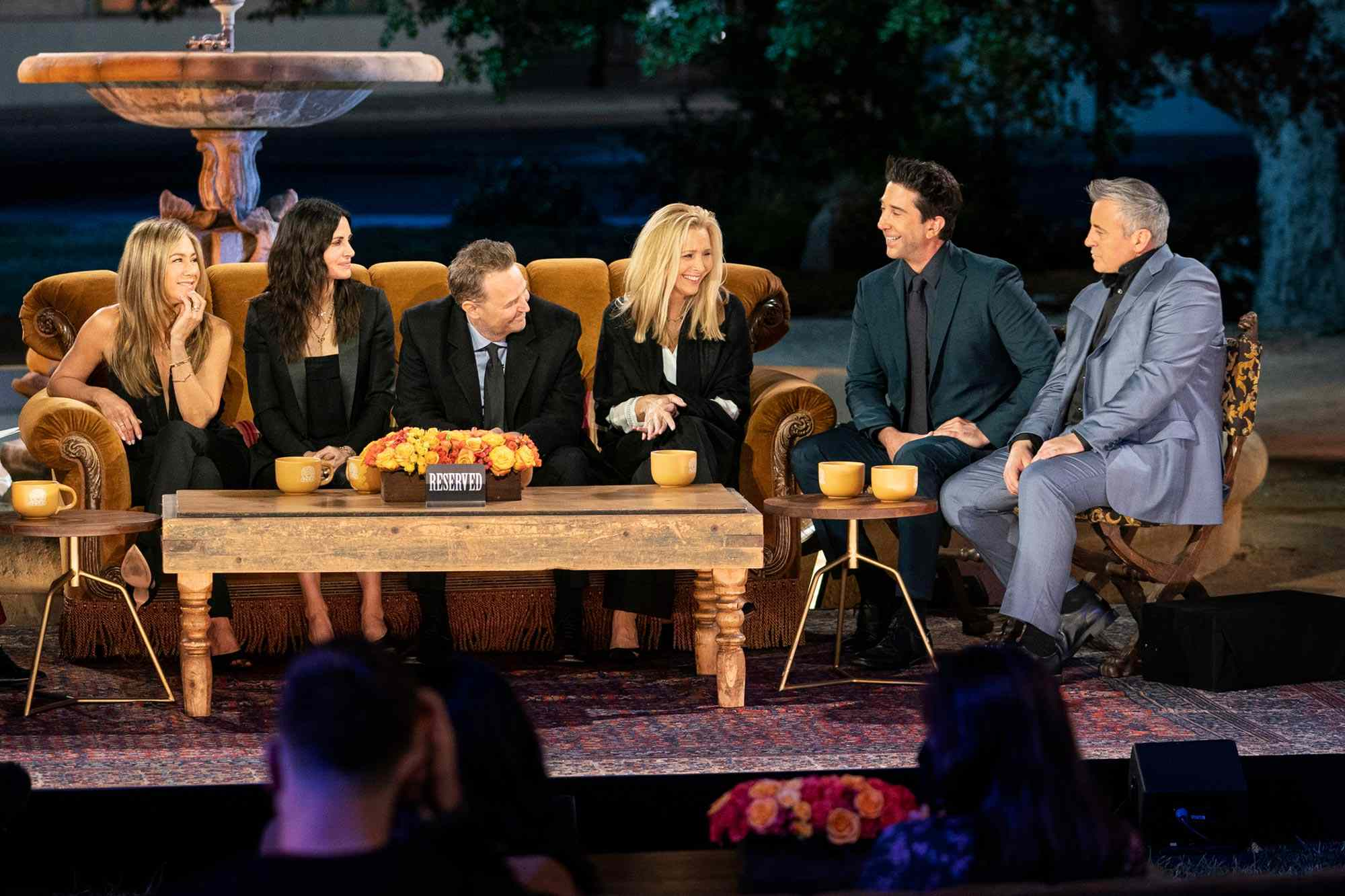 Finally: at the after-party following the reunion taping, the studio photographer captured a candid photo of just five of the six cast members—alone, off stage, in that classic orange-sofa pose.