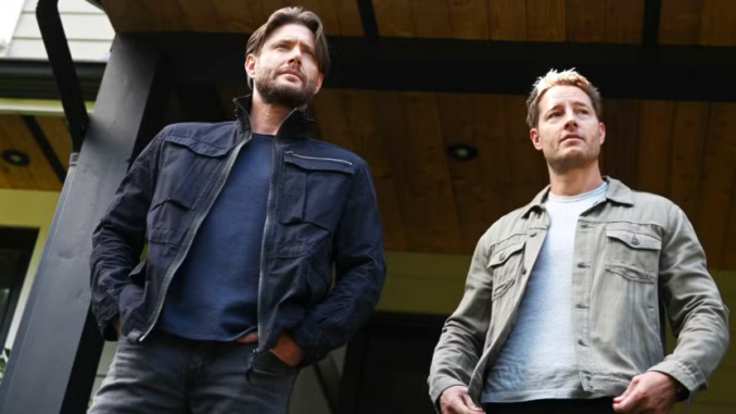 Jensen Ackles as Russell Shaw and Justin Hartley as Colter Shaw in Tracker season 3, episode 1CBS via MovieStillsDB