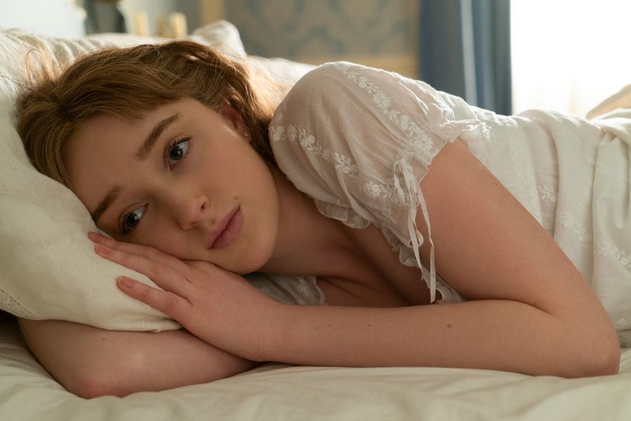 You can see this change the most in the Bridgerton clan, known for their very respectable, muted powder blue palette. The Bridgertons had a classic, self-assured look that signaled they knew who they were without peacocking around the Ton. And while that’s true by way of color palette still, the fabrics are shinier, the dresses are more ornate, and the vibe feels overall “showier” than it did before.